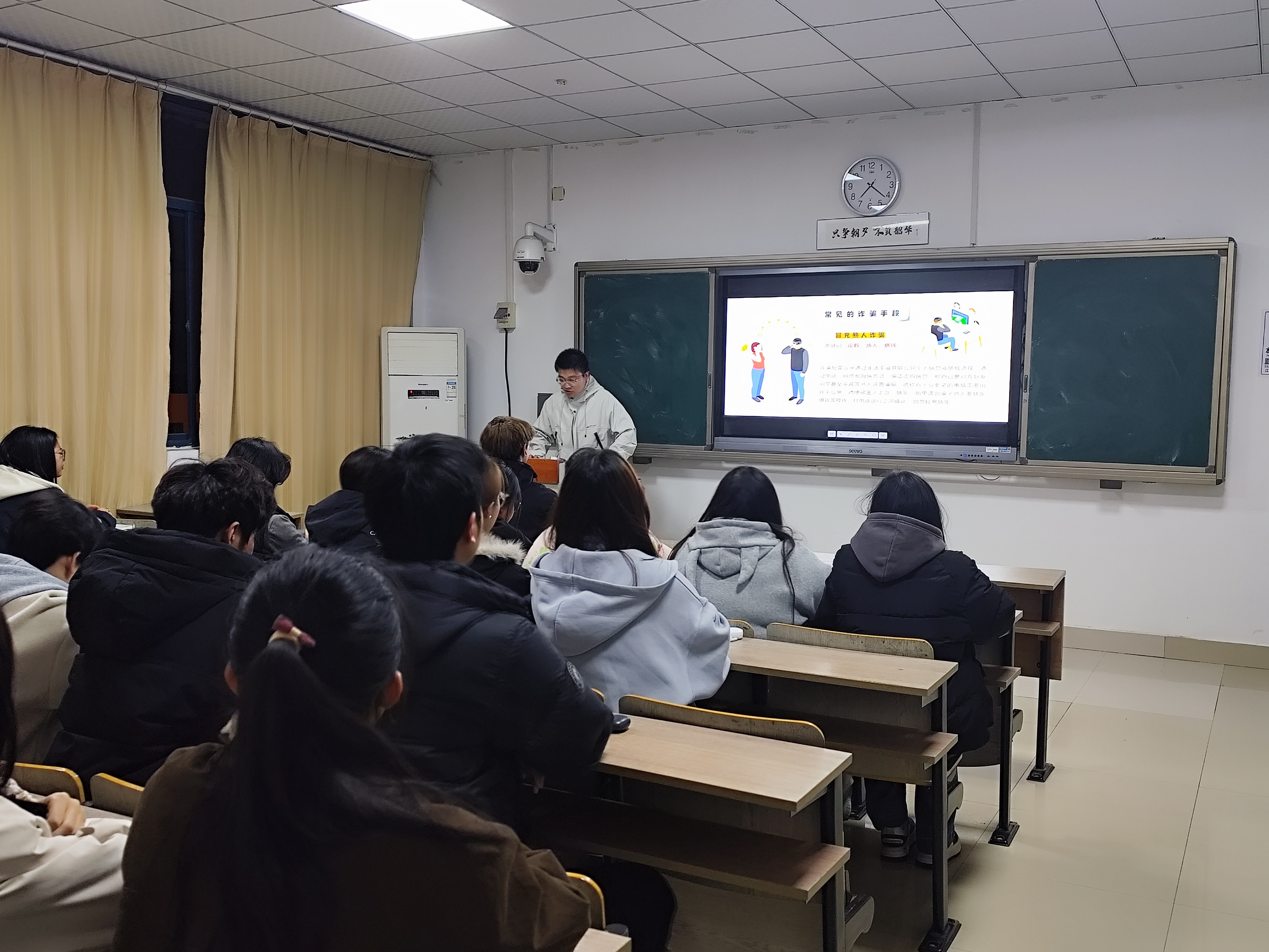 班会伊始,杨松同学结合近期全国范围内发生的多起校园诈骗典型案例,以PPT展示、视频播放等形式,生动讲解了电信网络诈骗、刷单返利诈骗、校园贷诈骗、冒充客服诈骗等常见诈骗手段的作案特点。他着重分析了诈骗分子针对学生群体社会经验不足、防范意识薄弱、消费需求多样等特点设计的诈骗套路,通过“案例还原+风险剖析+应对技巧”的模式,让同学们深刻认识到诈骗犯罪的危害性。