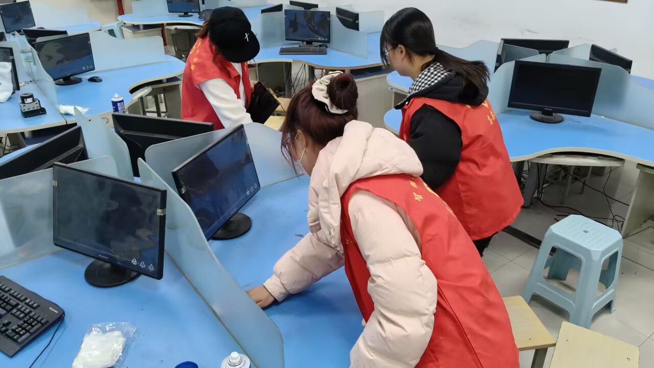 活动筹备阶段,志愿者团队提前与汽车馆相关负责人沟通对接,明确电脑设备的型号参数、使用需求及实训教学场景特点,制定了“分类检测、深度清洁、规范安装、逐机调试” 的工作方案。服务现场,志愿者们分工协作、有条不紊地投入工作:有的细致拆解电脑主机,用专业工具清除主板、风扇、散热片上的积尘,对接口进行清洁保养;有的专注进行系统重装与驱动调试,确保每台电脑都能适配教学软件运行;还有志愿者对键盘、鼠标等外设进行全面清理消毒,全力提升设备使用体验。经过当日高效配合,24 台电脑全部完成清洁与安装调试,达到 “硬件无故障、系统无卡顿、使用无隐患” 的标准,顺利交付使用。