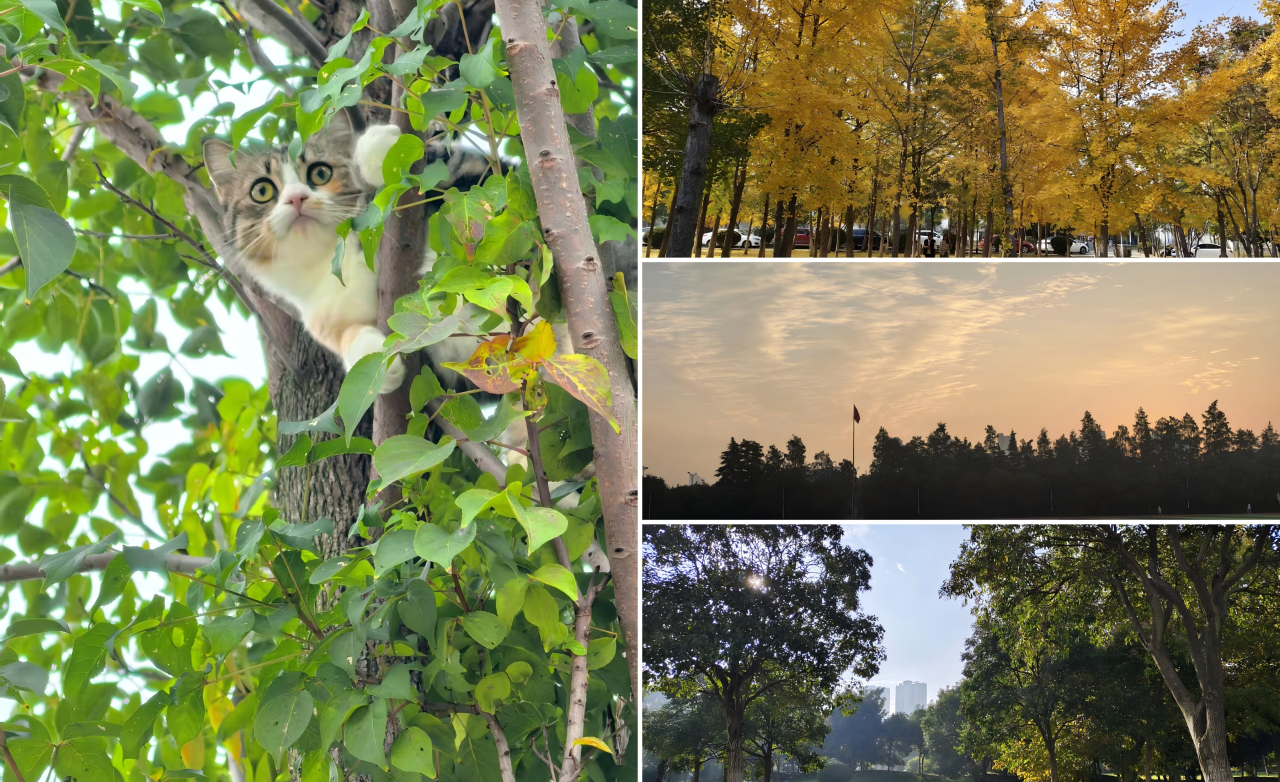 活动启动后,同学们积极响应,利用课余时间走出教室、漫步校园,用手机定格眼中的美好瞬间。大家放慢脚步,细心观察:阳光下舒展的枝叶、微风中摇曳的花草、角落中嬉戏的小猫咪、季节更替后换上“新衣”的校园建筑,都成为镜头下的珍贵素材。