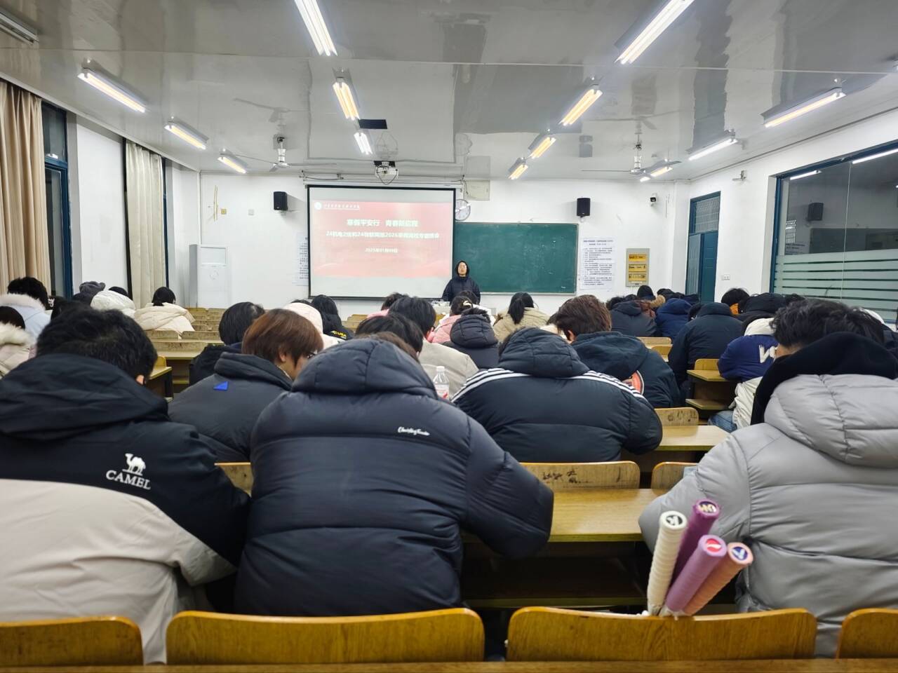 为传达学校寒假离校要求,保障同学平安充实度假,助力24级同学衔接职场或升学新阶段,1月8日晚6点30分24物联网班和24机电2班召开寒假离校事宜部署主题班会。班会由辅导员张姣姣主持,全体同学参会。