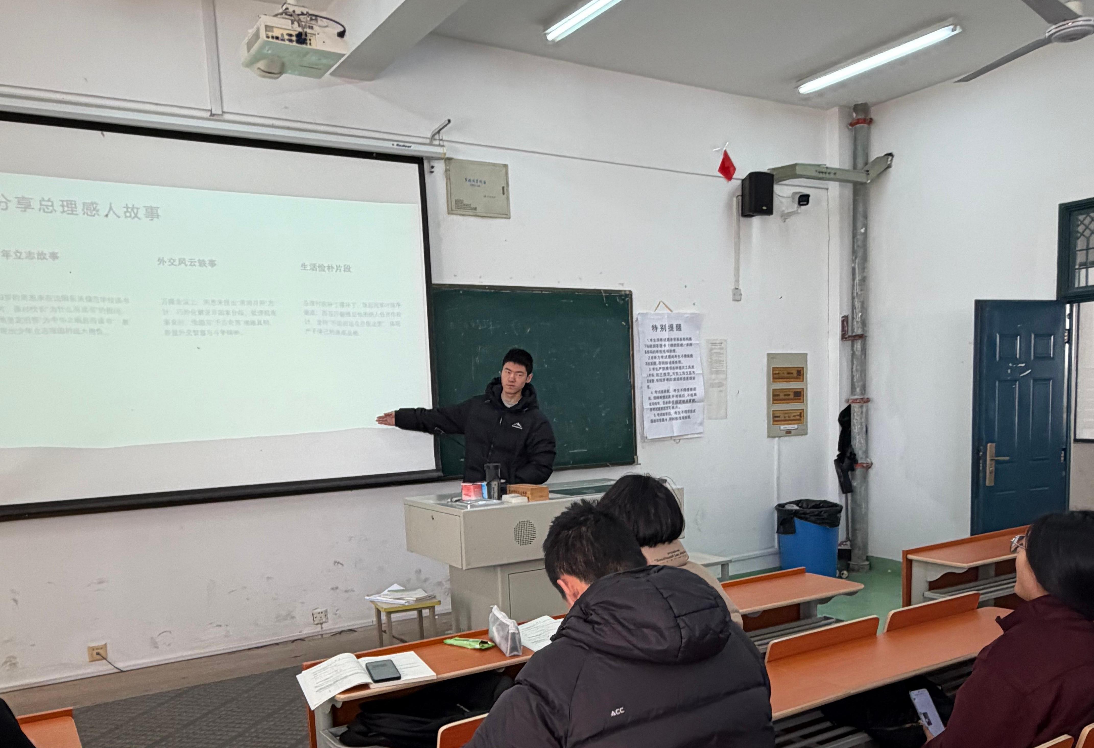 在总理故事分享与经典语录诵读环节,同学们踊跃发言、积极交流。大家结合查阅的资料与学习心得,深情讲述总理心系百姓、艰苦朴素、无私奉献的感人故事,重温“我们爱我们的民族,这是我们自信心的源泉”“为中华之崛起而读书”等掷地有声的经典语录。一句句铿锵有力的话语,一个个直击心灵的故事,让同学们深刻体会到伟人的人格魅力与家国担当。