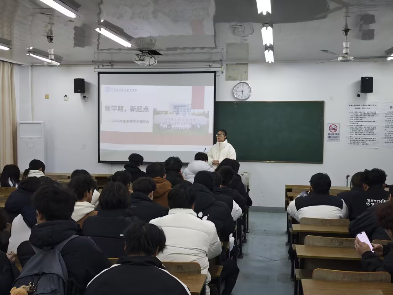 本次班会以纪律教育为重点,辅导员带领班级同学学习了学校最新的学生违纪处分管理办法,围绕课堂考勤、宿舍安全、考试规范、网络言行和日常行为这五个方面,详细讲了各类违纪行为的后果和整改要求,还结合校园里的典型案例做了警示教育,让大家清楚违规行为不仅影响自己的学业,还会破坏班级和校园的秩序。同学们明白了遵守校规校纪的重要性,纷纷表示会从日常小事做起,守好纪律底线,一起维护班级的良好氛围。