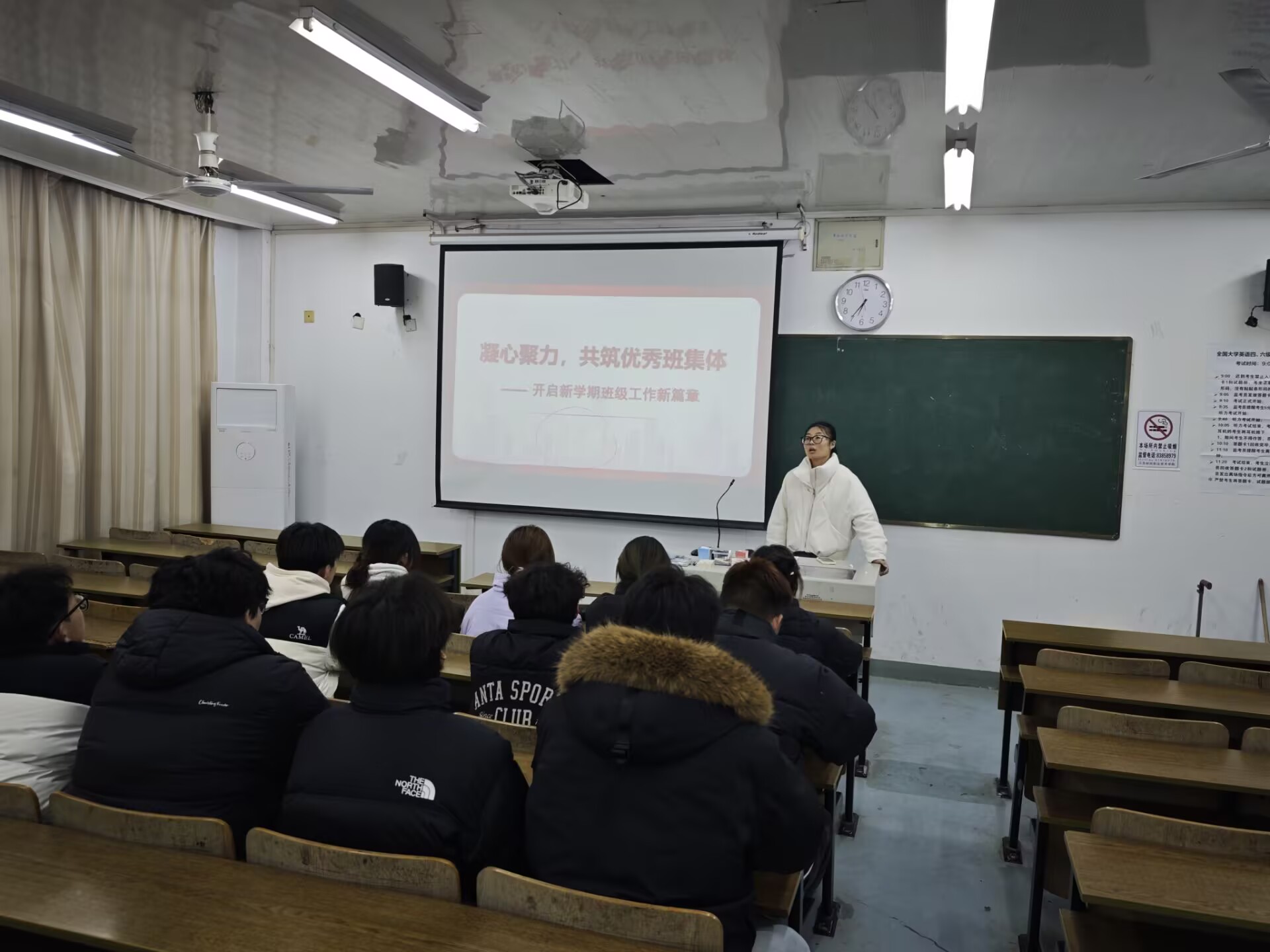 班会结束后,班委们紧接着召开了新学期班委会。大家一起复盘了上学期的班级工作,梳理了学风建设、考勤管理、宿舍卫生、集体活动等方面的成果,也实实在在找出了工作中的问题,比如和同学的沟通效率不高、服务不够贴心、班级活动参与度有待提升等。