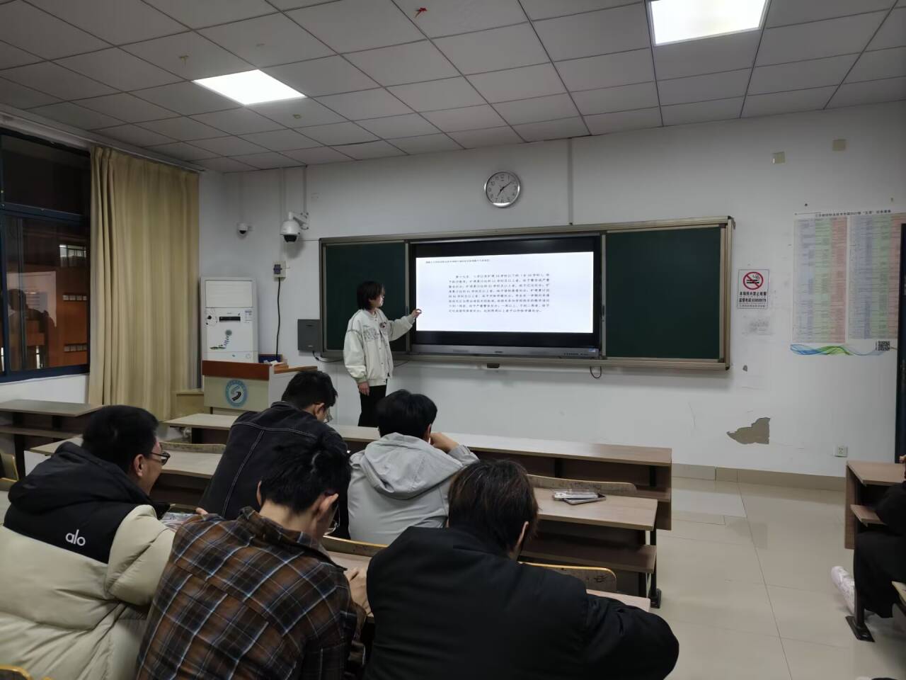 在讲解过程中,学习委员通过翔实的文字材料和生动的案例,引导同学们从被动接受知识向主动探索真理转变。台下同学们全神贯注,现场学习氛围浓厚。大家纷纷表示,通过此次分享,对“什么是学风”以及“如何建设优良学风”有了更清晰、更深刻的认识。