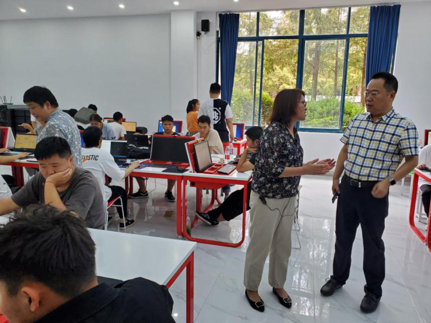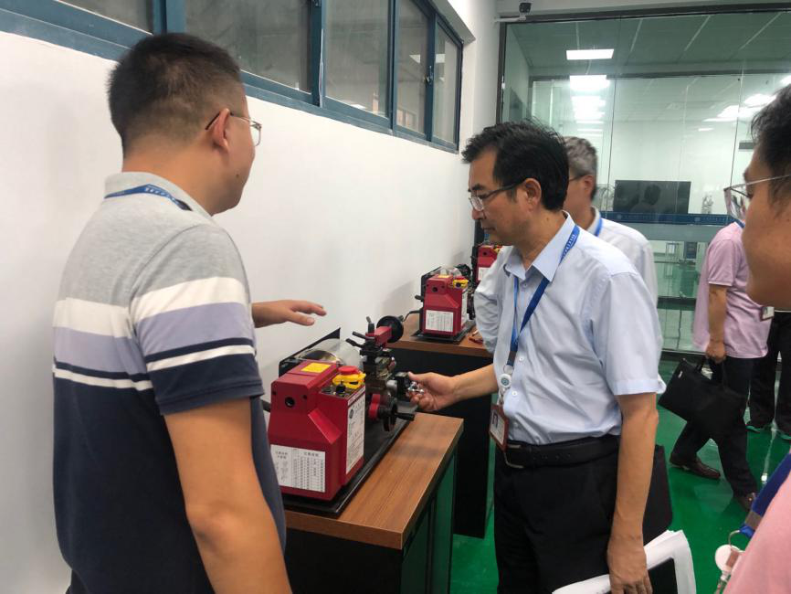 上午10时,党委书记韩香云,校长程淮中,副校长杜长等校领导携同合作企业--南通超达模具有限公司的副总经理、财务总监郭巍巍一行来到智能制造综合实训中心了解教学开展情况。