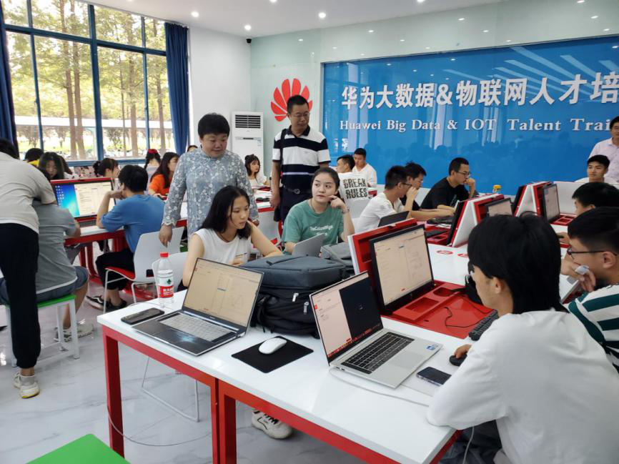 目前,智能制造综合实训中心基本完成了各个项目的建设任务,暑期已就各实训项目对教师进行了全面培训。实训项目主要包括智能制造综合产线、华为大数据平台、华为物联网应用技术、虚拟仿真、工业机器人、3D打印、双创、钳工、数控加工等九大模块。按照教学计划,本学期将完成对全校各专业学生开展智能制造综合实训。