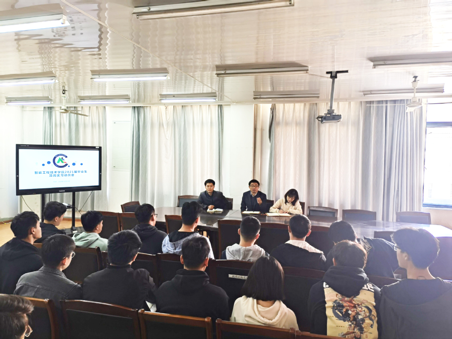 11月12日下午,智能工程技术学院在会议室召开2021届毕业生顶岗实习动员会, 50余名即将离校的顶岗实习学生代表参加了动员会,学院刘军院长、费婷婷副书记、干建松副院长参加了动员会并向即将奔赴顶岗实习岗位的学生代表提出要求。