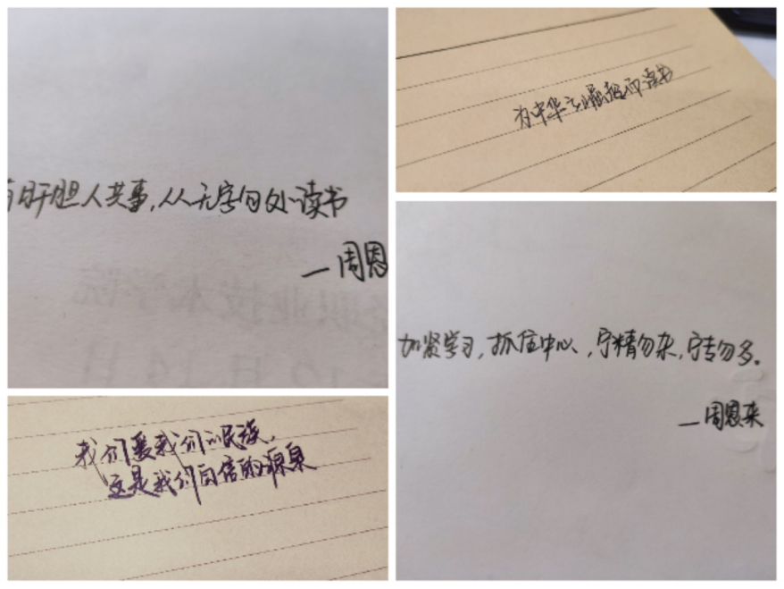 本次主题班会由罗凯主持,会议开始引入“为什么要学习周恩来精神?周恩来精神是什么?”。带着疑问带领大家一起回顾了周恩来总理的个人生平,卓越贡献;让大家了解历史,懂得读书机会来之不易,知道学习的重要性,从而更加努力学习。之后全班同学一起学习了周恩来经典语录,“为中华之崛起而读书”、“与有肝胆人共事,从无字句处读书”等语句今天听来仍觉振聋发聩。班会现场书写临摹其名言名句,观看周恩来相关视频,希望同学们真正静下心来研读周恩来事迹,感悟周恩来精神。周恩来同志的一生,与党的光辉历史、中国人民的奋斗历史和中华民族的复兴历史紧密相连,正如习近平主席说:周恩来,这是一个光荣的名字、不朽的名字。