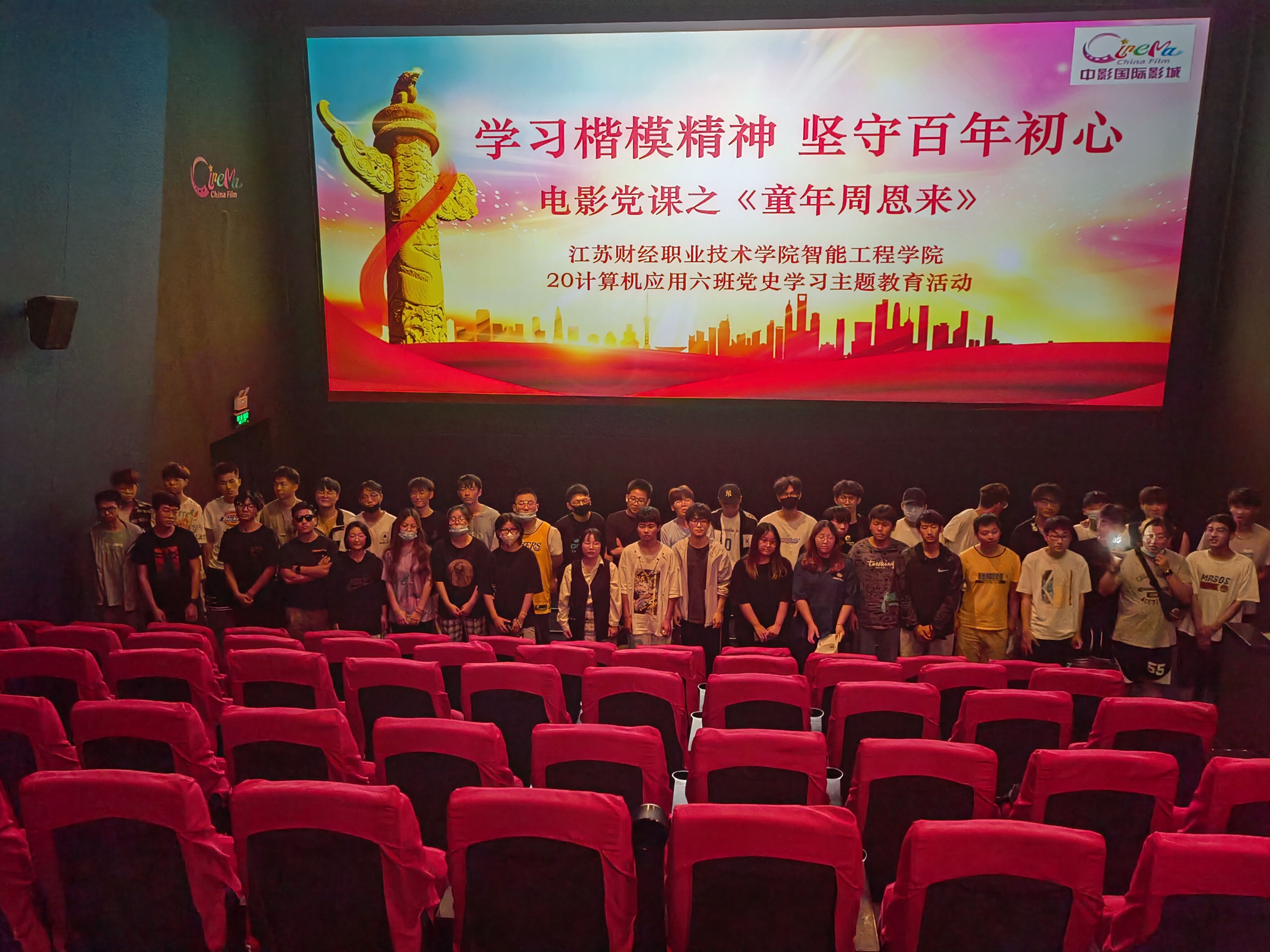 时值首部展现周恩来总理童年生活的电影《童年周恩来》登陆各大院线之际,为了激发同学们学习党史的兴趣,也为了丰富四史教育的形式,更为了增强同学们的爱国主义精神,帮助同学们走好人生路,20计算机6班于6月4日开展“学习楷模精神,坚守百年初心”主题观影活动。