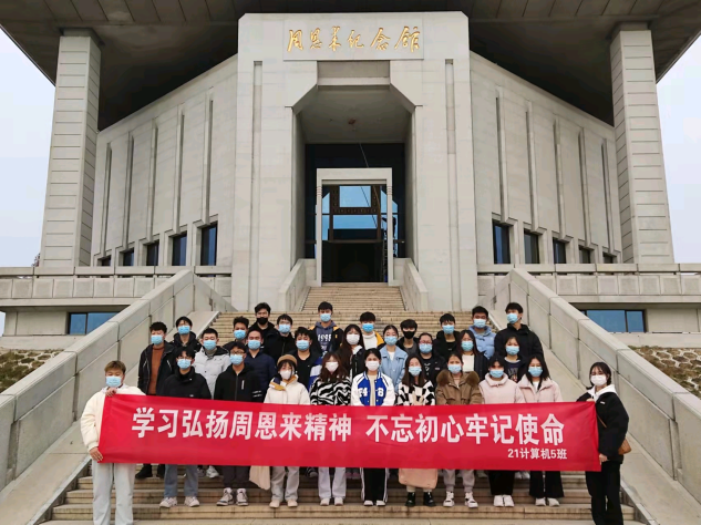 为了传承红色文化,汲取信仰的力量,学习周恩来总理求真务实、脚踏实地、全心全意为人民服务的精神,12月15日,2021级计算机5班开展了参观周恩来纪念馆的活动。