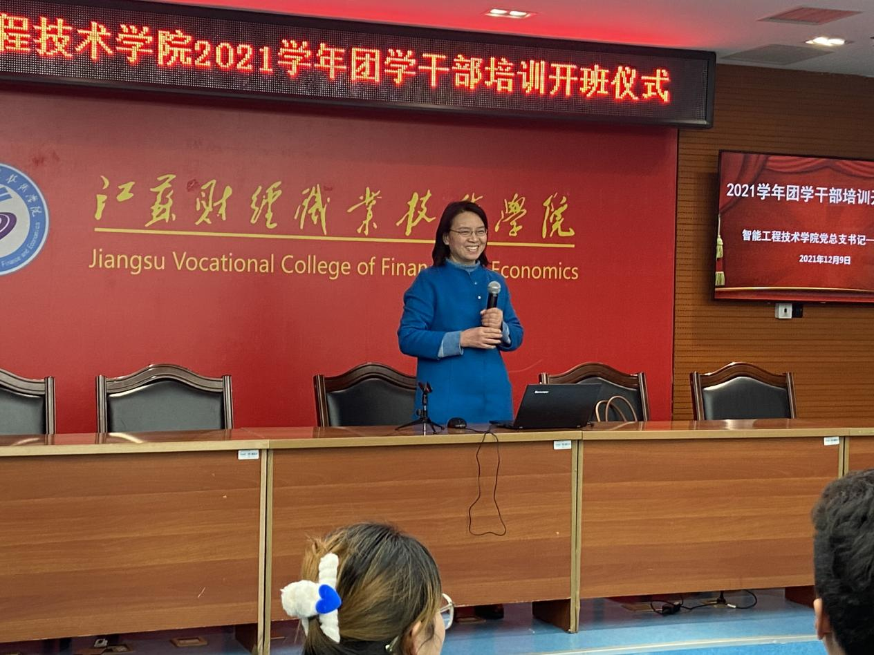 2021年12月9日,在校图书馆220报告厅,智能工程技术学院党总支书记蒋道霞为团学干部讲了第一课“新时代 新青年 新担当”。蒋书记鼓励同学们坚定理想信念,夯实工作实务,努力成为理想坚定、素质过硬、能力全面的学生干部。勉励学生干部要努力学习,持续学习,结合当代国情,向学生干部诠释了“新”时代赋予“新”青年的“新”的担当与使命,希望同学们能在工作和学习中汲取力量,不断奋斗。
