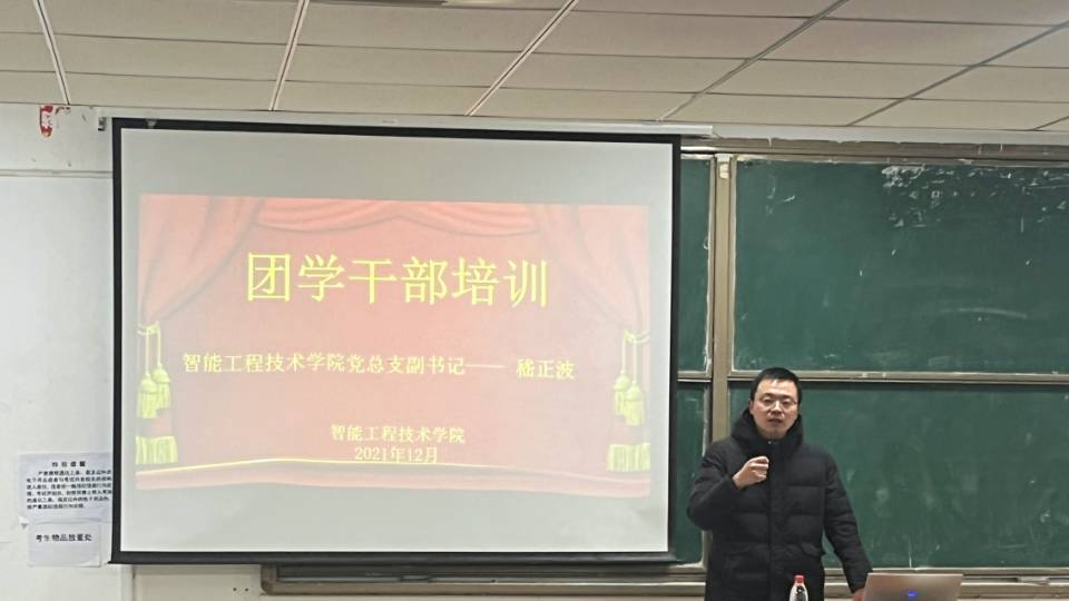 2021年12月29日,智能工程技术学院党总支副书记嵇正波为团学干部讲了第二课“如何做好一名学生干部”。嵇书记从“对学生干部的认识、学生干部的作用、学生干部应具备的素质和怎样做一名学生干部”四个方面展开。希望学生干部树立良好形象,提高自身素养,努力奋斗,增强马克思主义原则性,树立崇高理想,遵纪守法,严于律己,宽以待人,锐意进取,不断创新。嵇书记要求学生干部团结广大同学,发挥好学校和学生之间的桥梁作用,端正态度,锻炼与人交往的能力,在服务同学的工作中提升自我,做一名风清气正履职尽责的优秀学生干部。