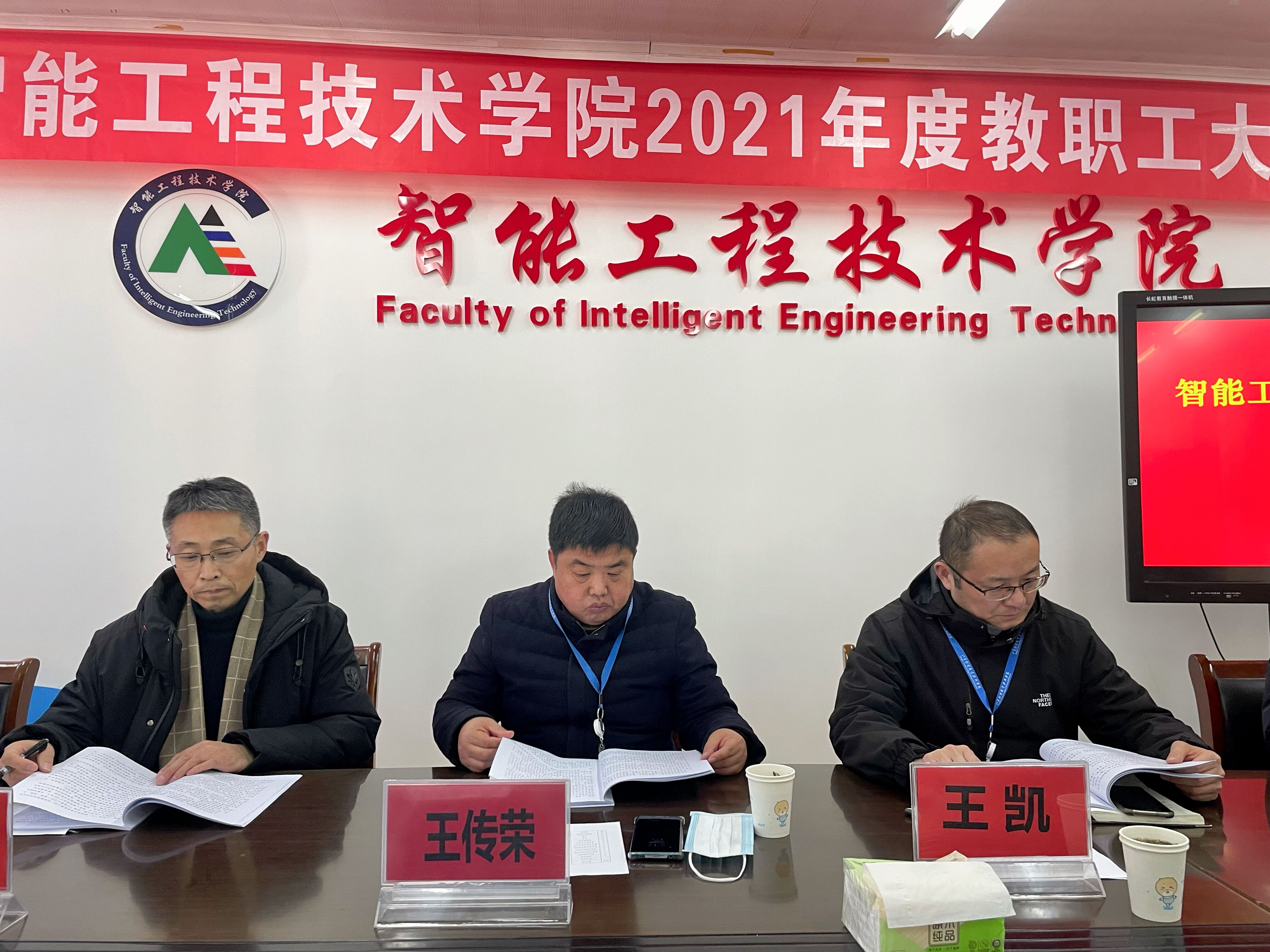 会议听取和审议了刘军同志代表学院所做的《智能工程技术学院2021年度工作报告》和《智能工程技术学院2021年度财务工作报告》,听取和审议了葛竹春同志代表工会所做的《智能工程技术学院2021年度分工会工作及工会经费使用报告》,认真讨论了《智能工程技术学院教学基本建设与教学改革专项考核细则》、《智能工程技术学院专业教师对接企业管理办法》和《智能工程技术学院“十四五”事业发展规划》等重要文件,对智能工程技术学院分工会2021年工作开展和分工会主席的工作情况进行了网上测评。
