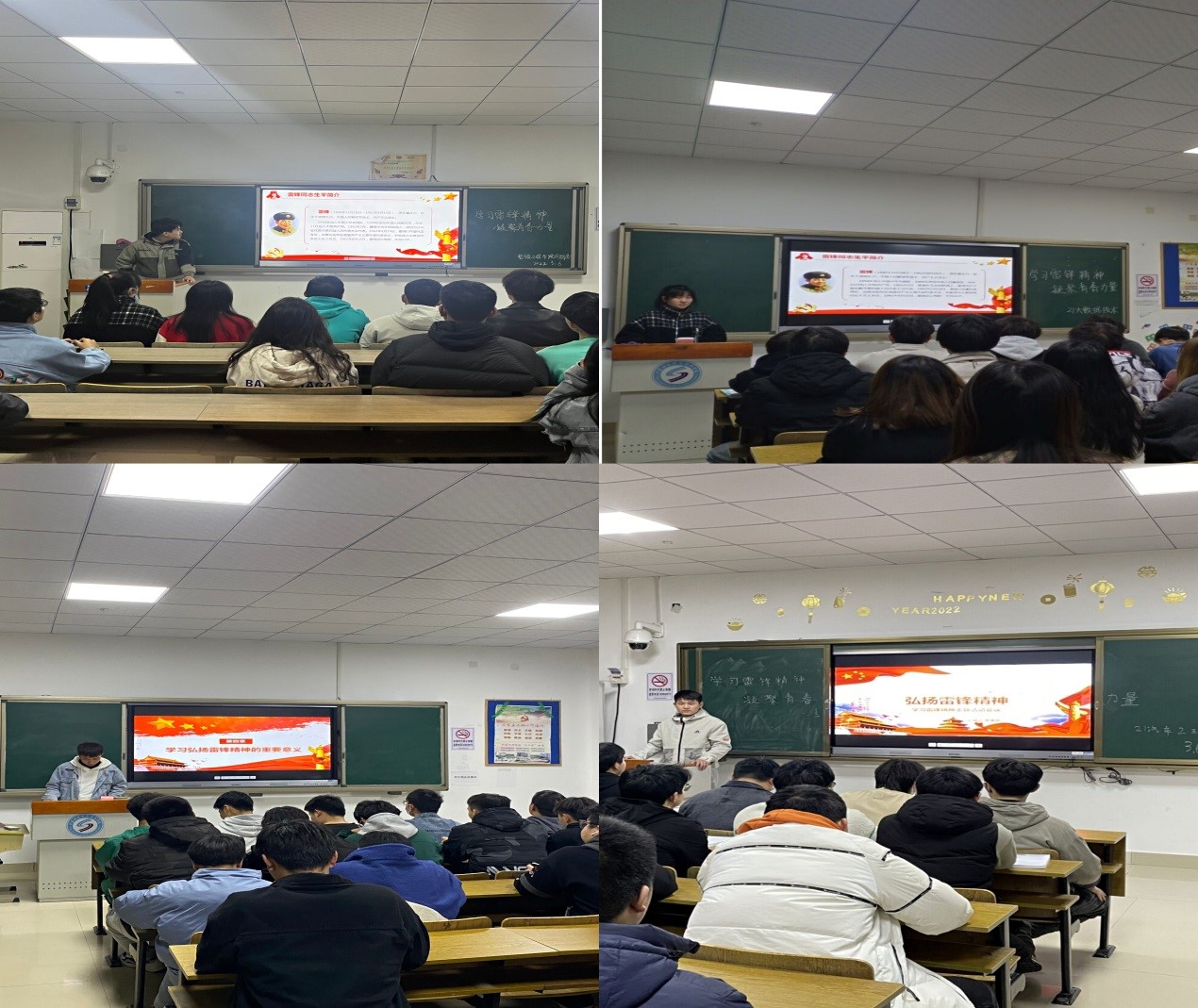 3月6日,各班级陆续开展以“学习雷锋精神 凝聚青春力量”为主题的理论宣讲。通过学习雷锋的先进事迹,引导青年大学生向雷锋同志学习热爱党、热爱祖国、热爱社会主义的崇高理想和坚定信念,服务人民、助人为乐的奉献精神,干一行爱一行、专一行精一行的敬业精神,锐意进取、自强不息的创新精神,艰苦奋斗、勤俭节约的创业精神。