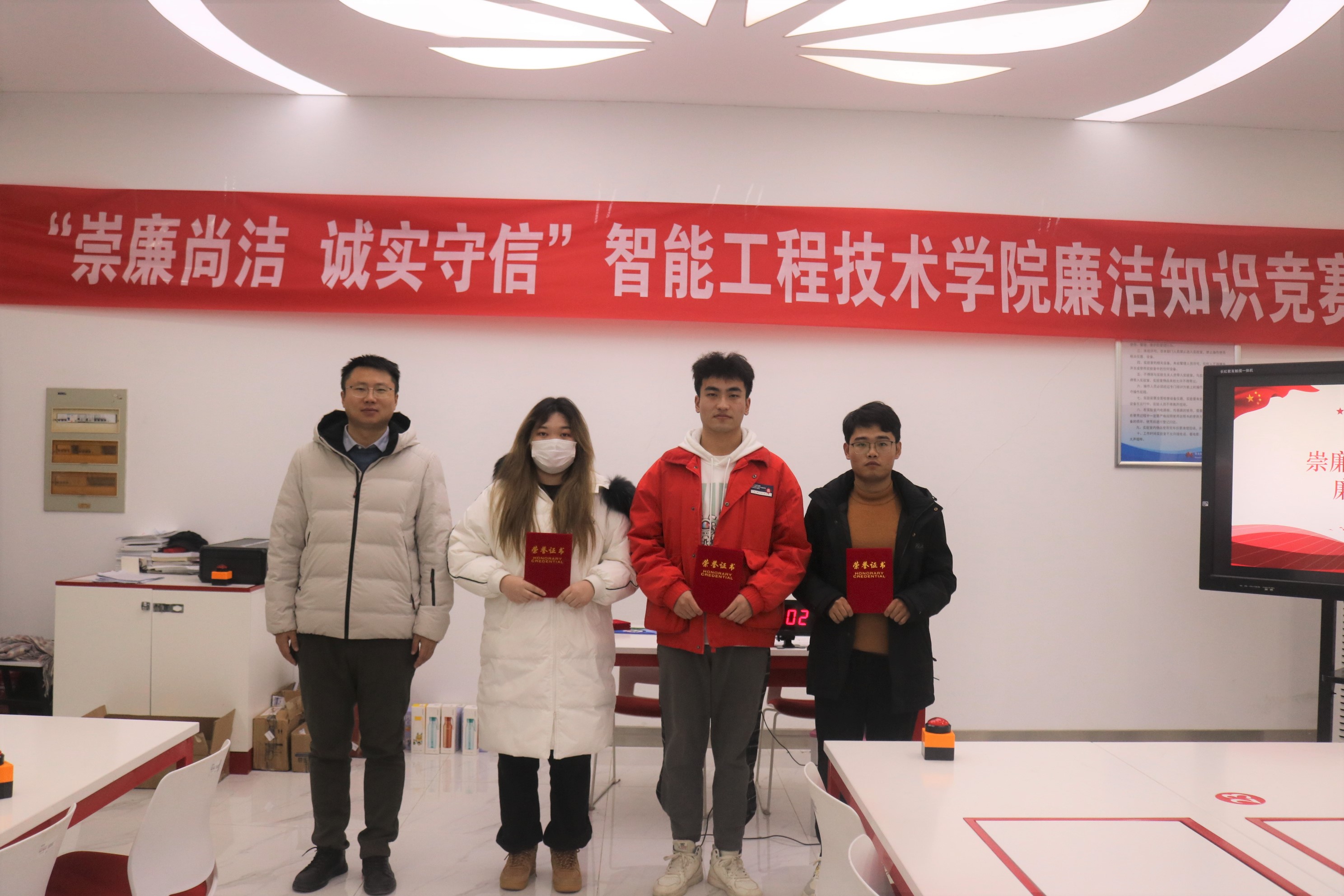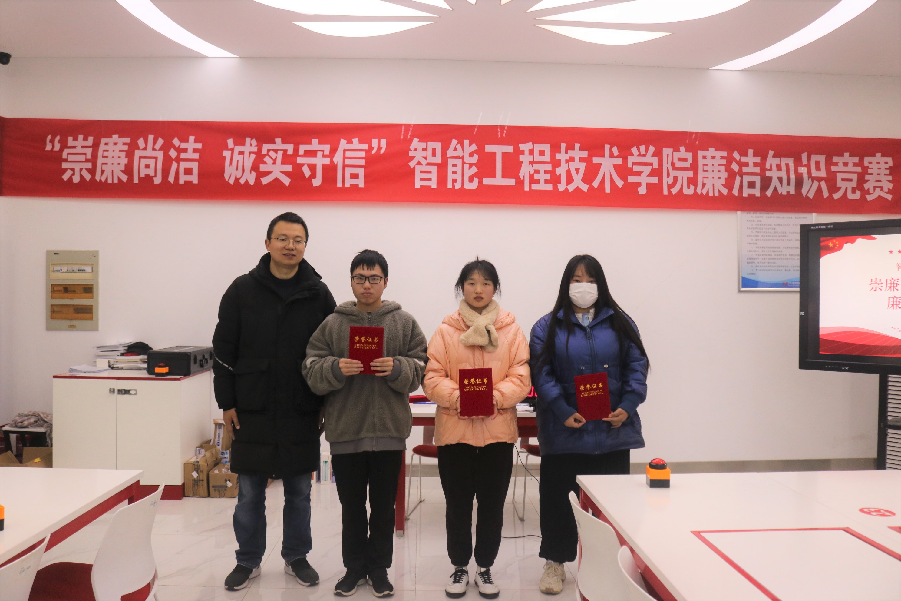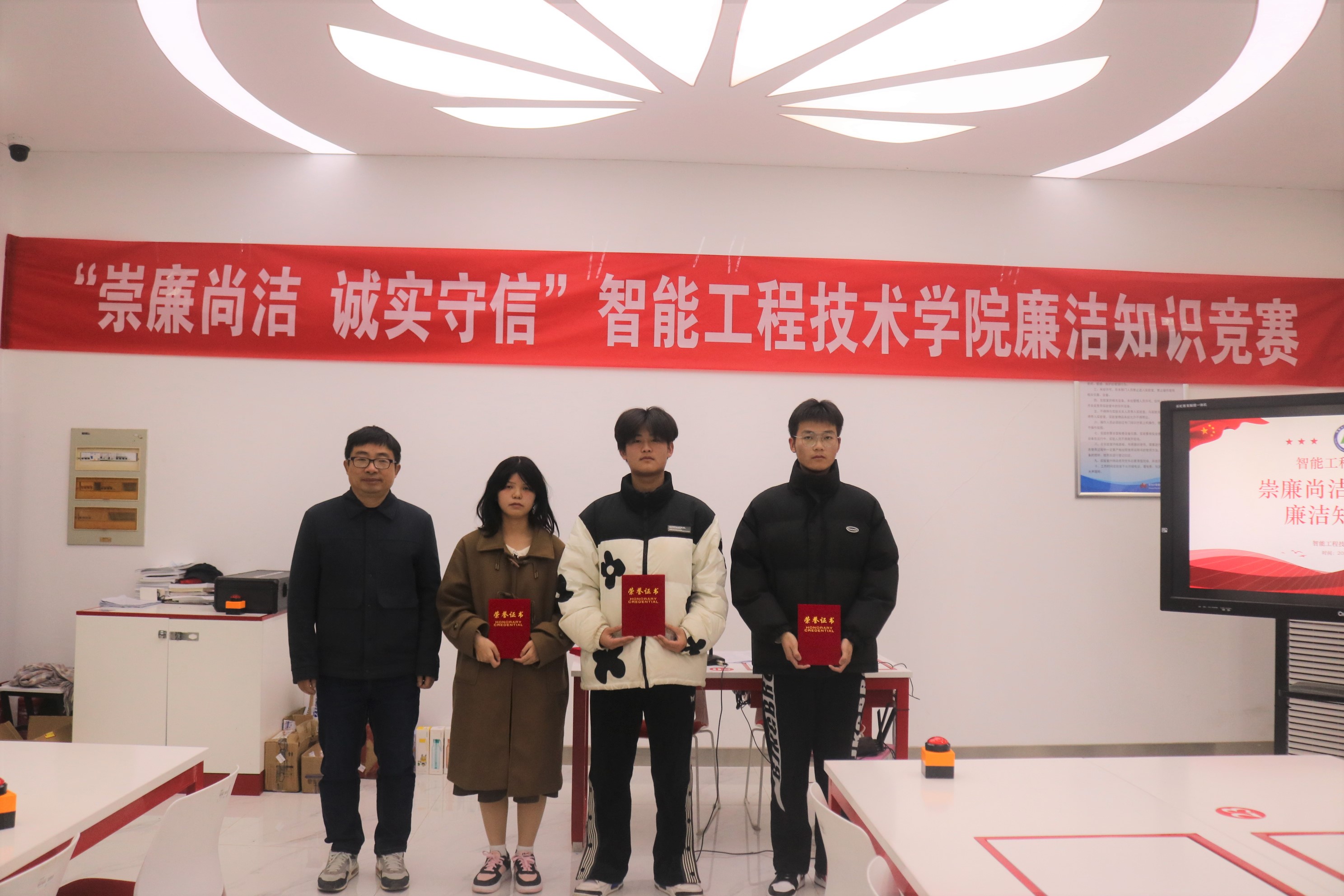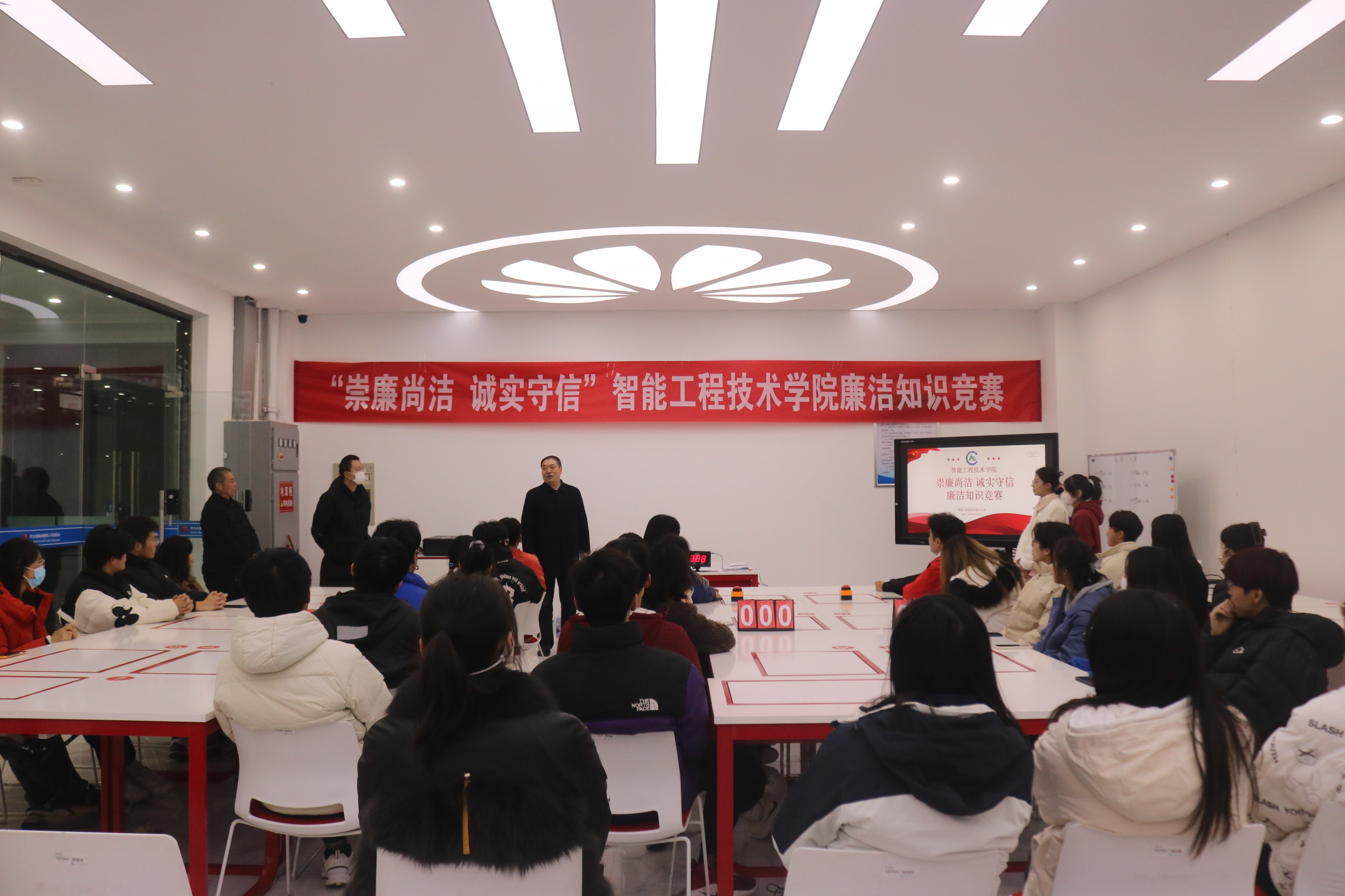 为全面学习、全面把握、全面落实党的二十大精神,加强全院学生廉洁自律教育,弘扬清风正气,引导学生厚植廉洁文化基因,将廉洁“种子”播进学生心田。12月1日至2日,智能工程技术学院在大数据人才培养基地举行“踔厉奋发 勇毅前行”学习党的二十大精神知识竞赛暨“崇廉尚洁 诚实守信”廉洁知识竞赛。校纪委委员、智能工程技术学院院长刘军,校关工委委员万广华,党总支副书记嵇正波,离退休教师王亚及全体专职辅导员出席活动。