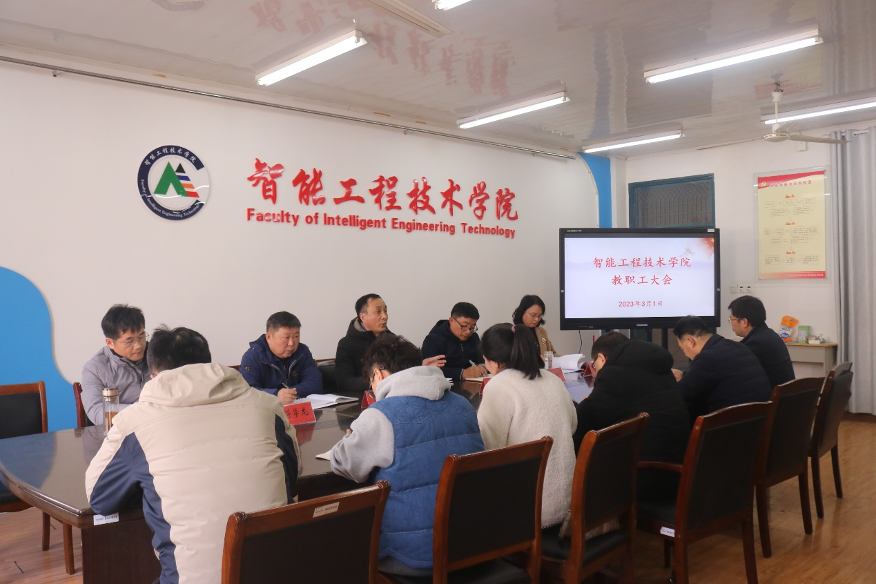 2023年3月1日下午,智能工程技术学院召开了2022年度教职工大会暨工会会员大会,智能工程技术学院和智能制造综合实训中心全体教师参加了会议。学校党委委员、工会主席郭德怀出席了会议,会议由智能工程技术学院党总支书记蒋道霞主持。