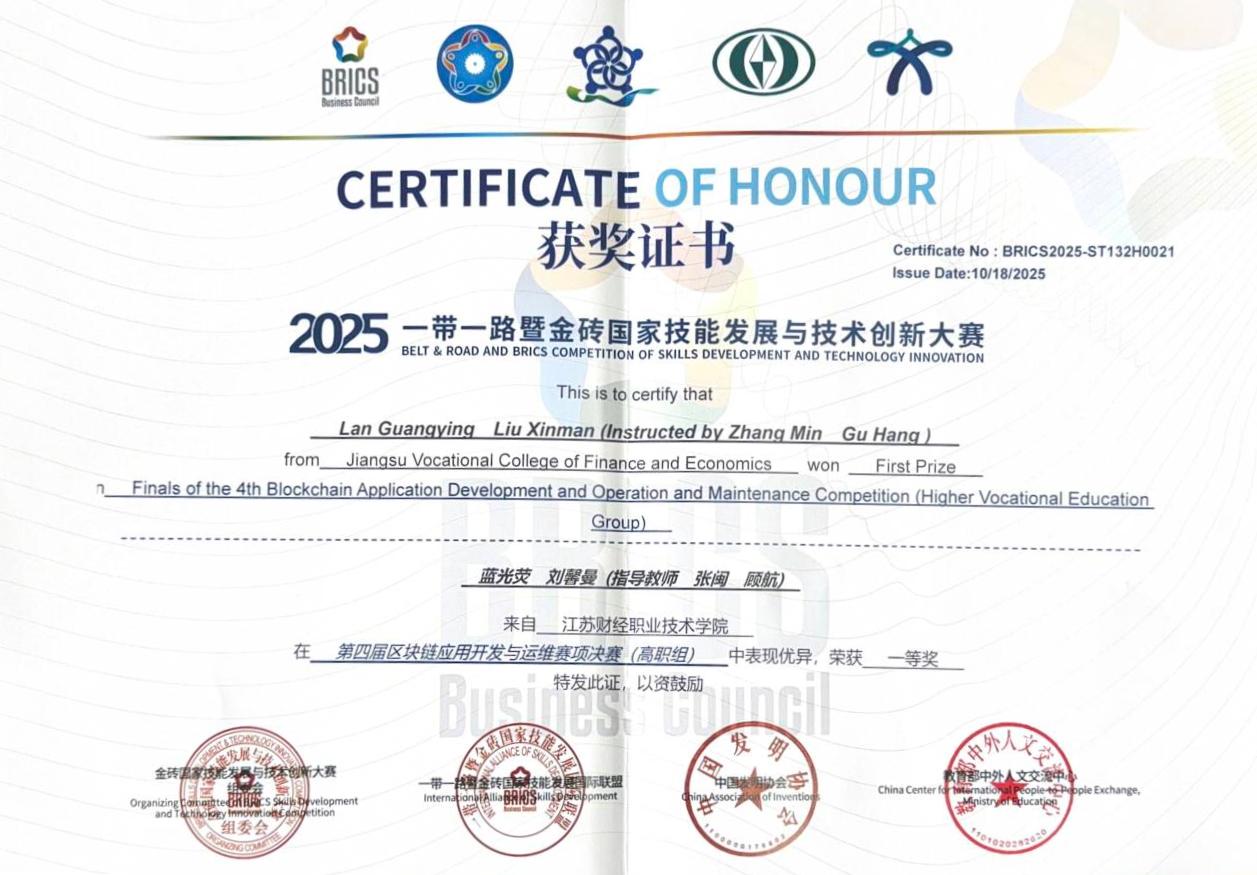 此次获奖不仅是对我校区块链技术教学成果的肯定,更为师生搭建了交流学习的优质平台,有效推动了技术实践能力的提升。下一步,我校将以此为契机,持续强化技能人才培养,争取在后续省赛中再创佳绩,续写辉煌!