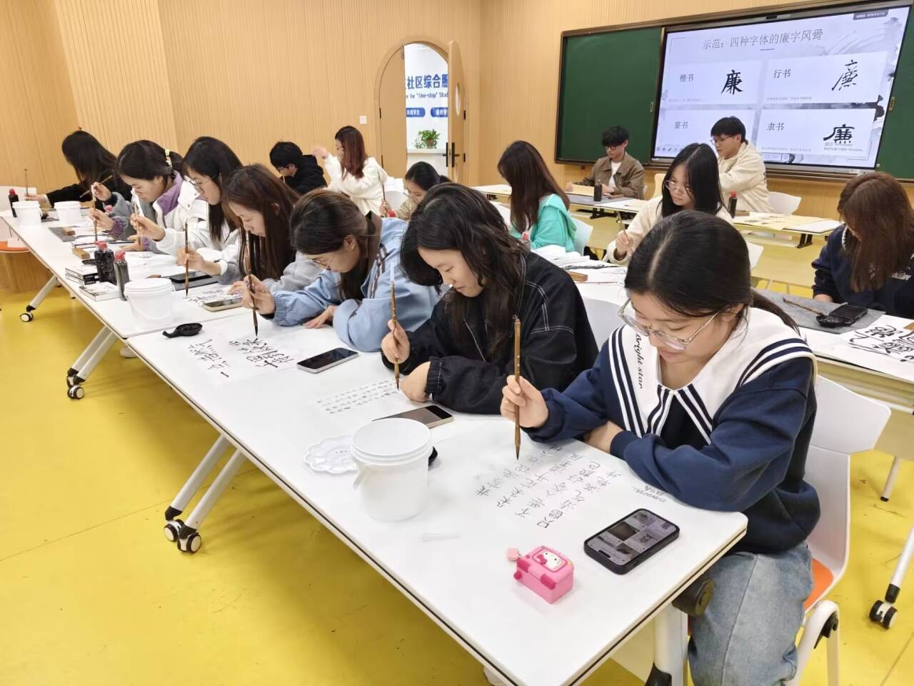 活动尾声,对于完成的书画作品,学子们驻足欣赏、相互品评、拍照留念。不少参与者表示:“亲手书写廉洁箴言、描绘高洁莲花,既领略了传统艺术之美,更让廉洁理念内化于心、外化于行,深刻体会到新时代青年的品德担当。”