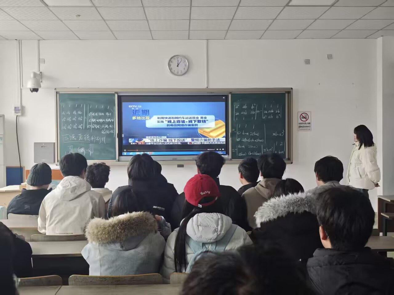 视频观看结束后,殷雨欣结合校园和班级的日常实际,对反诈知识进行了补充讲解。她提醒同学们在日常学习生活中要提高警惕、擦亮双眼,严格做到“不轻信、不透露、不转账”,自觉远离各类诈骗陷阱;同时鼓励大家将本次学到的反诈知识分享给家人和朋友,以个人带动身边人,共同构筑全民反诈的安全防线。