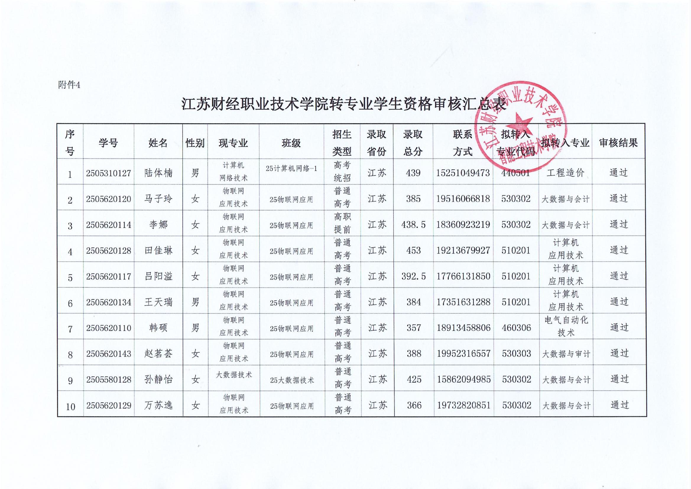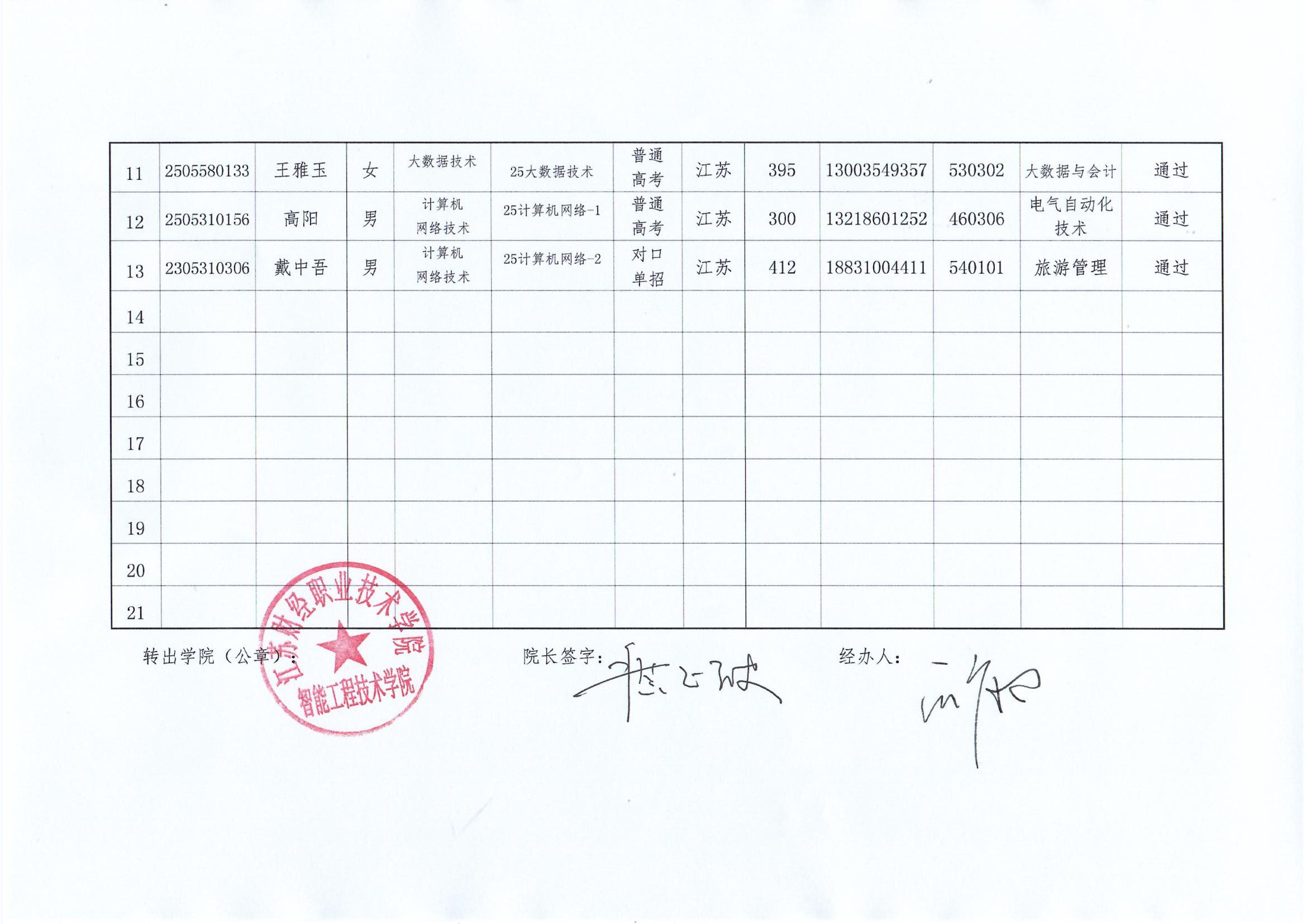 智能工程技术学院转专业学生资格审核汇总表