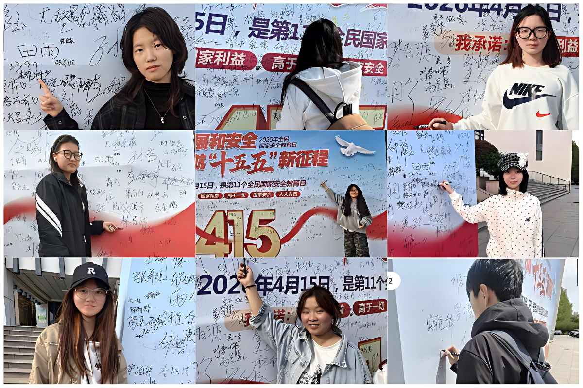 4月15日当天,学院组织学生参与学校“树牢总体国家安全观・争做国家安全守护者”主题签名活动,以庄严承诺践行安全责任;在敏行楼406集中组织学生代表观看《千万师生同上一堂国家安全教育课》,系统学习总体国家安全观核心要义。同时,学院组织 25 级班级负责人参加专题讲座培训,强化学生骨干引领作用;在学生公寓楼下张贴宣传海报,营造“人人讲安全、处处守安全”的浓厚校园氛围。