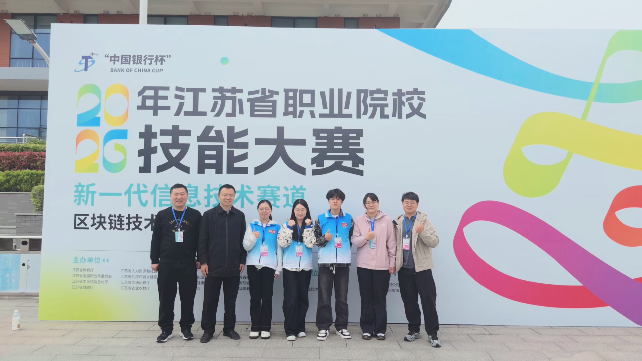 4月21日,2026年江苏省职业院校技能大赛区块链技术应用赛项圆满落幕。在学校领导的高度重视和各职能部门的大力支持下,我校智能工程技术学院学生组张金铭、季子慧、黎美惠在张闽、顾航老师的指导下,凭借出色的表现斩获一等奖。教师组参赛选手王麒森在比赛中表现优异,最终荣获教师组二等奖。